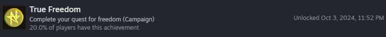 The game was fantastic and quite honestly, it's a shame only 20% of its steam base saw it through because the story gets much more intense in the last quarter of the game.